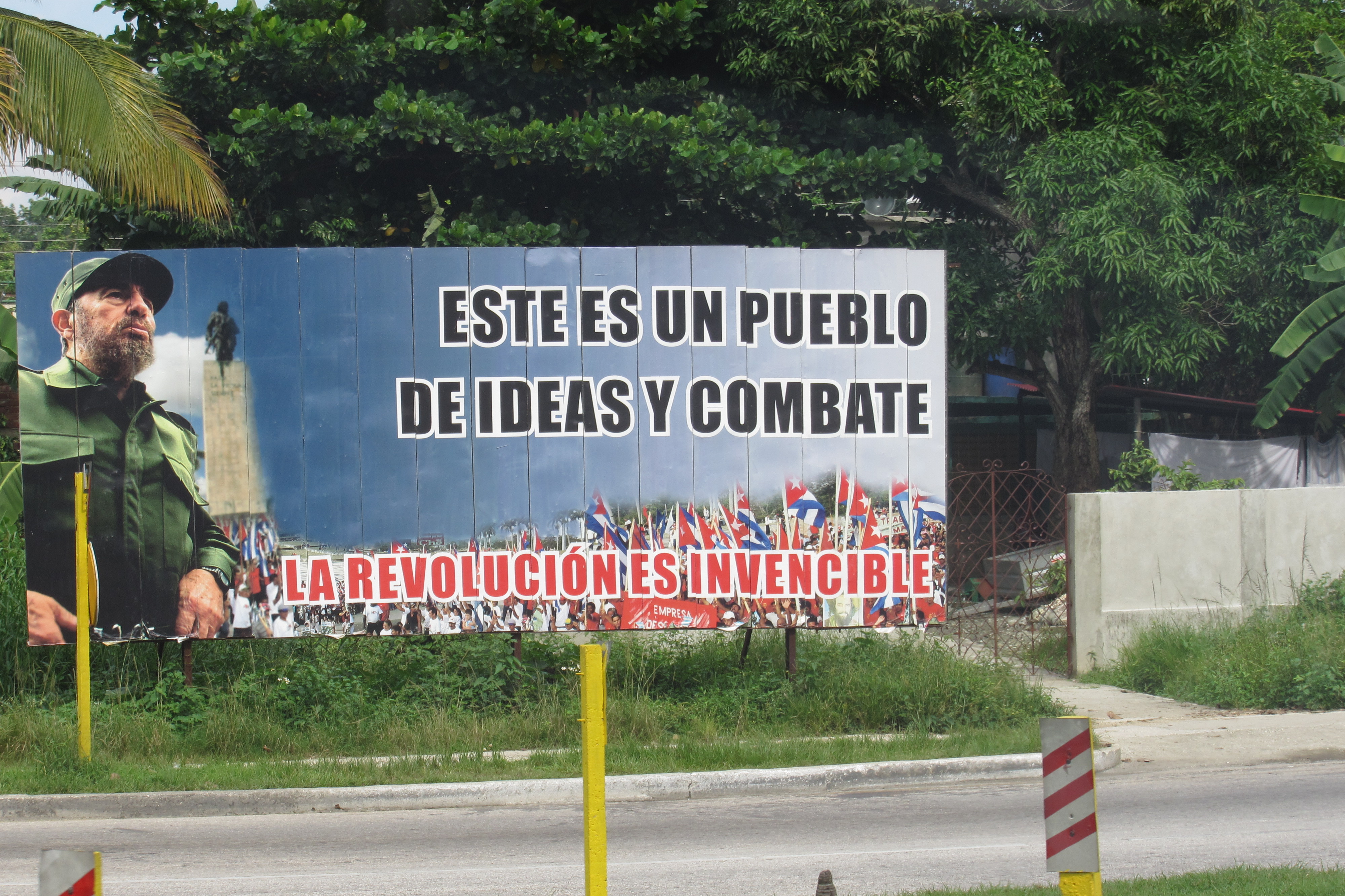 One thing Cuba does is challenge the conceptualization of poverty as understood from a capitalist perspective. In the U.S., poverty manifests as homelessness, debt, food insecurity, unemployment, lack of access to adequate services, etc. In Cuba, the minimum wage is $15 USD a month, the maximum is around $70 USD a month. (This leaves out those who earn from the tourist industry or the black market.) So according to capitalist standards, Cubans live in extreme poverty. Yet there is no homelessness (94 percent of Cubans own their homes), there is free education through the doctorate level, free healthcare, and some extremely subsidized food staples. Culture is a government priority, with performances and shows accessibly priced and artists and musicians paid by the state. Yet $15 doesn’t go very far, and unsubsidized goods, including basic foods, are quite expensive. This is most certainly exacerbated by the U.S. embargo, but also by Cuban government policies such as the dual currency system, which privileges tourists and renders certain products and activities outside of the reach of the average Cuban. Life is not easy. The sign on the side of the road proclaims “The Revolution is Invincible.” That remains to be seen, but the revolution does strike me as being weary.