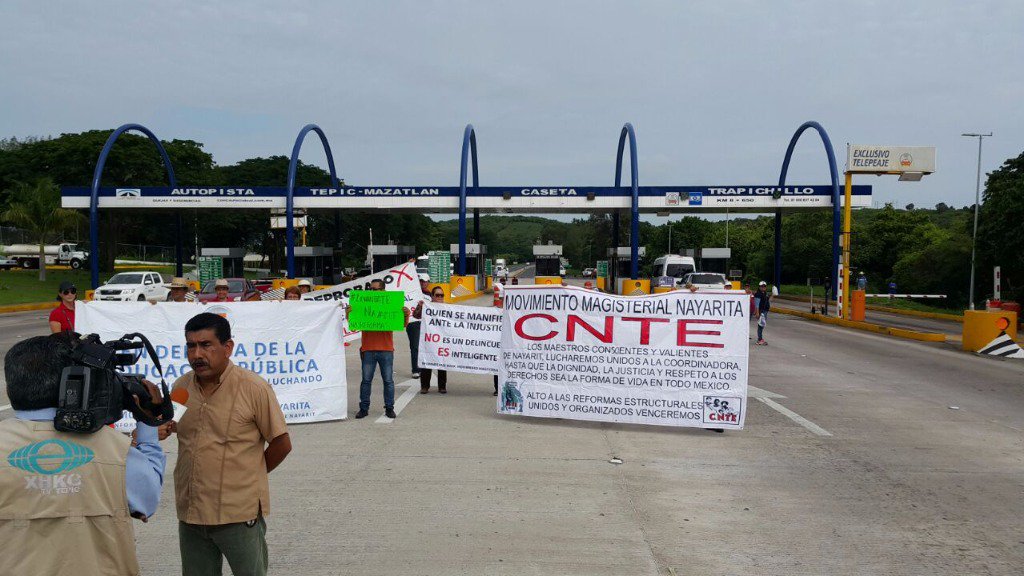In recent weeks, mass mobilizations and movement organizing efforts have continued. August 8, Emiliano Zapata’s birthday, saw upwards of 100,000 teachers and farmers march together in Mexico City. A day later, farmers, teachers and civil society groups took over a toll plaza on the Nayarit-Sinaloa highway, allowing cars to pass for free and asking that instead of paying the toll drivers donate to the struggle. Teachers, civil society groups and prominent academics gathered in Mexico City on August 10 for a twelve-hour national forum to discuss what a democratic and holistic education project would look like. A second forum will happen in September. During this time, for five days in a row teachers in Chiapas blockaded and shut down businesses belonging to transnational corporations and companies who are part of the neoliberal business association Mexicanos Primeros. Another business group, COPARMEX, recently lamented that the teachers’ strike has caused more economic damage than the armed Zapatista uprising in 1994. On August 12, Secretary General Rubén Núñez and Organization Secretary Francisco Villalobos of CNTE Section 22 in Oaxaca were released from prison. And the Guatemalan teachers union also expressed their support, shutting down an international crossing with Mexico for the second time on August 13.