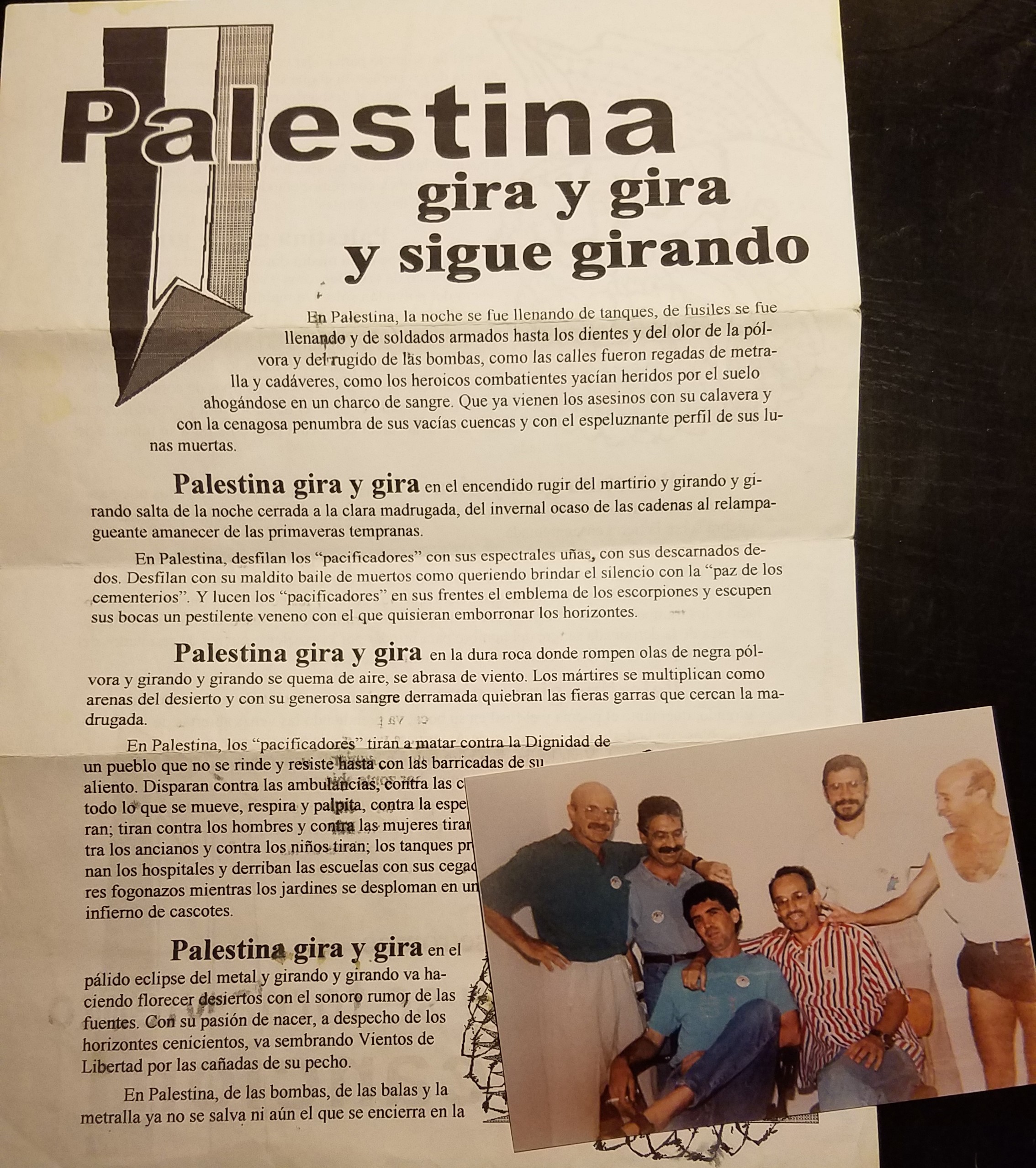 Along with their letters they would often include stickers, pamphlets, or newspapers. At one point, they included a poem about Palestine that one of their members had written. It was the height of the second Intifada and also being involved in Palestine solidarity work, I figured it’d be neat to translate it into English.