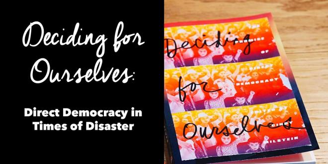 Last month, the anthology Deciding for Ourselves: The Promise of Direct Democracy was published by AK Press. As part of #RadicalMay, an multilingual series of online events organized by the recently formed Radical Publishers Alliance, editor Cindy Milstein and contributors Dilar Dirik, Asbjørn Nielsen, and I will participate in the online panel “Deciding For Ourselves: Direct Democracy in Times of Disaster” on Saturday, May 9 at 3pm EDT/12pm PDT.